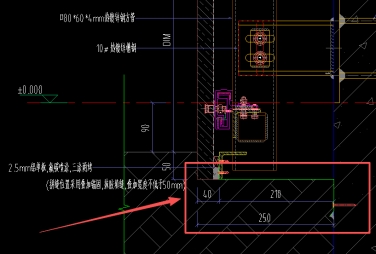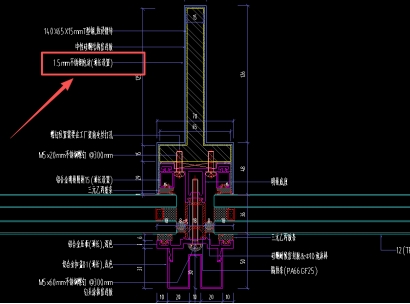 65、请问幕墙节点图JD401电动平移门外的不锈钢板装饰线条是否漏项?